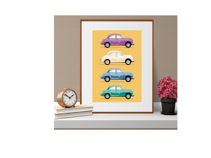 4 Morris Minor Classic Iconic Car Illustration Art Profile Sideview Poster, Print, Souvenir, Gift, Poster, A4, A3, A2