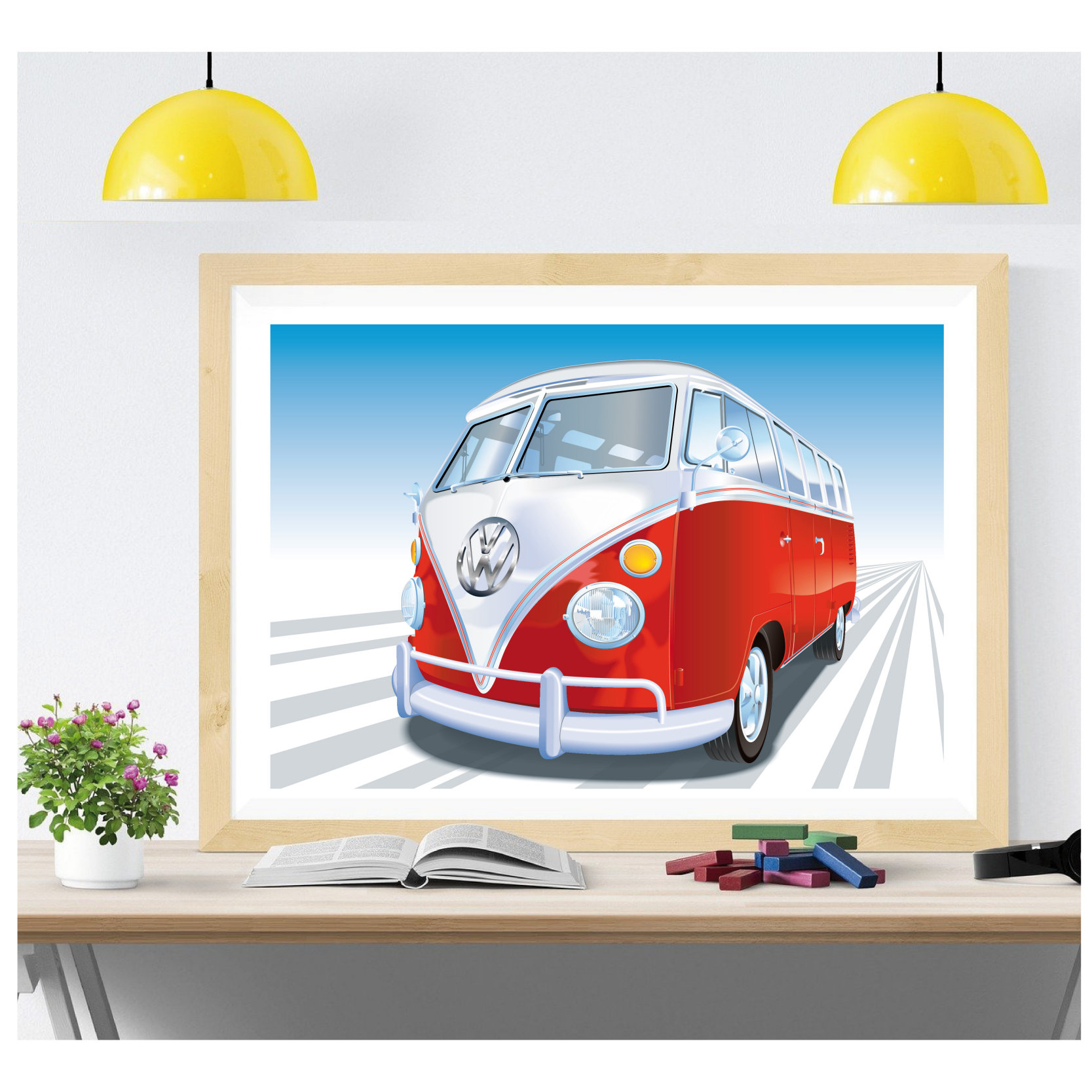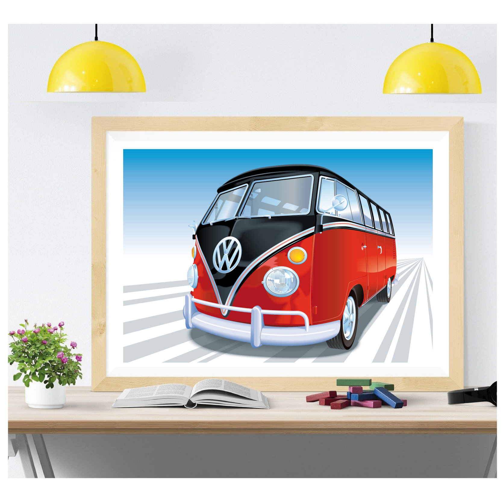 Volkswagen Kombi Microbus Transporter Vintage Classic 1957 Illustration Wall Art Print Gift, Poster, Choice of colours, A4, A3, A2 sizes