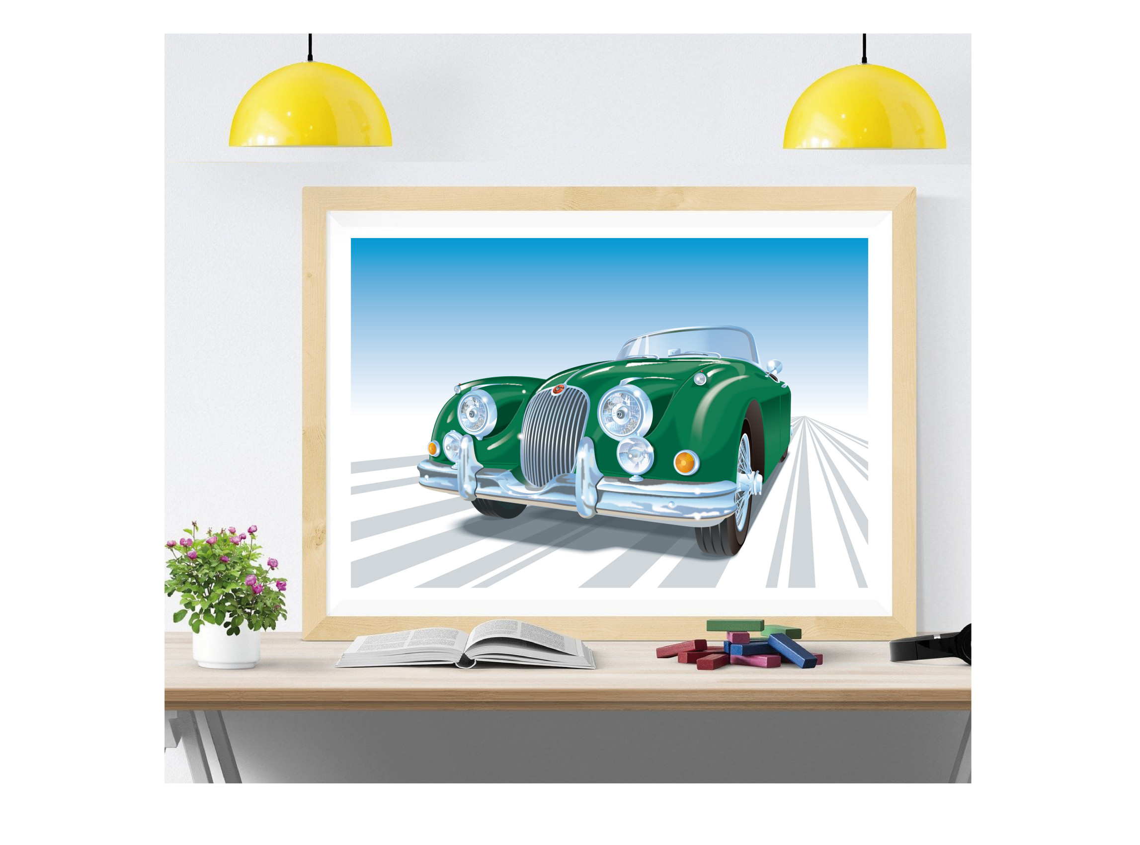 Jaguar XK-150 Drophead Coupé Vintage Classic British Sportscar Illustration Wall Art Print Gift, Poster, Choice of colours, A4, A3, A2 sizes