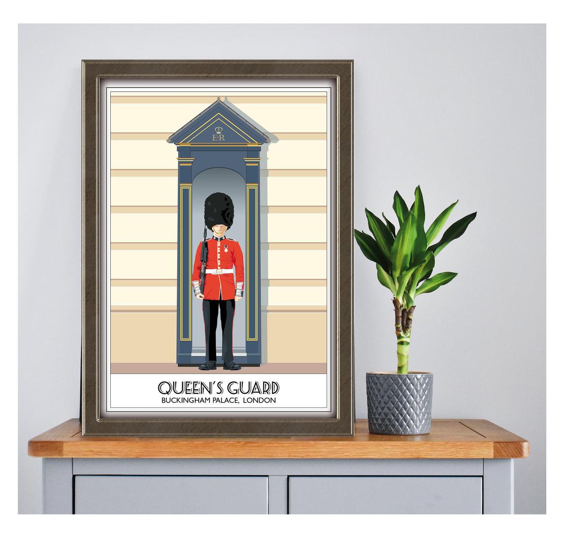 The Queen's Guard, Buckingham Palace, London, Travel Poster, Grenadier, Coldstream, Print, Vintage, A4, A3, A2, Retro, Poster, Art print