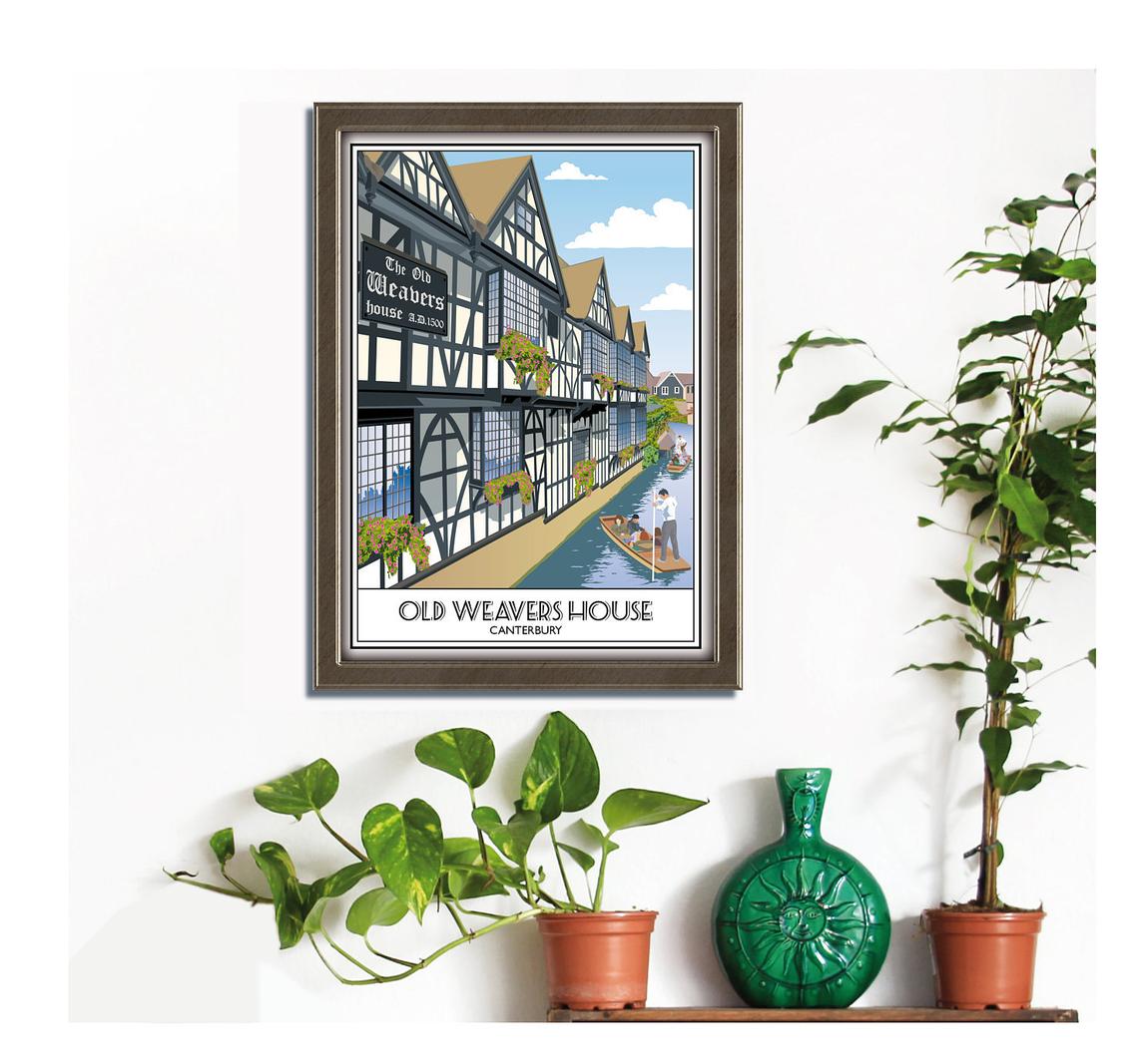 The Old Weavers House, Canterbury, River Stour. Kent, Travel/Railway Poster, Print, Vintage, Souvenir, Poster, A4, A3, A2 in Retro style