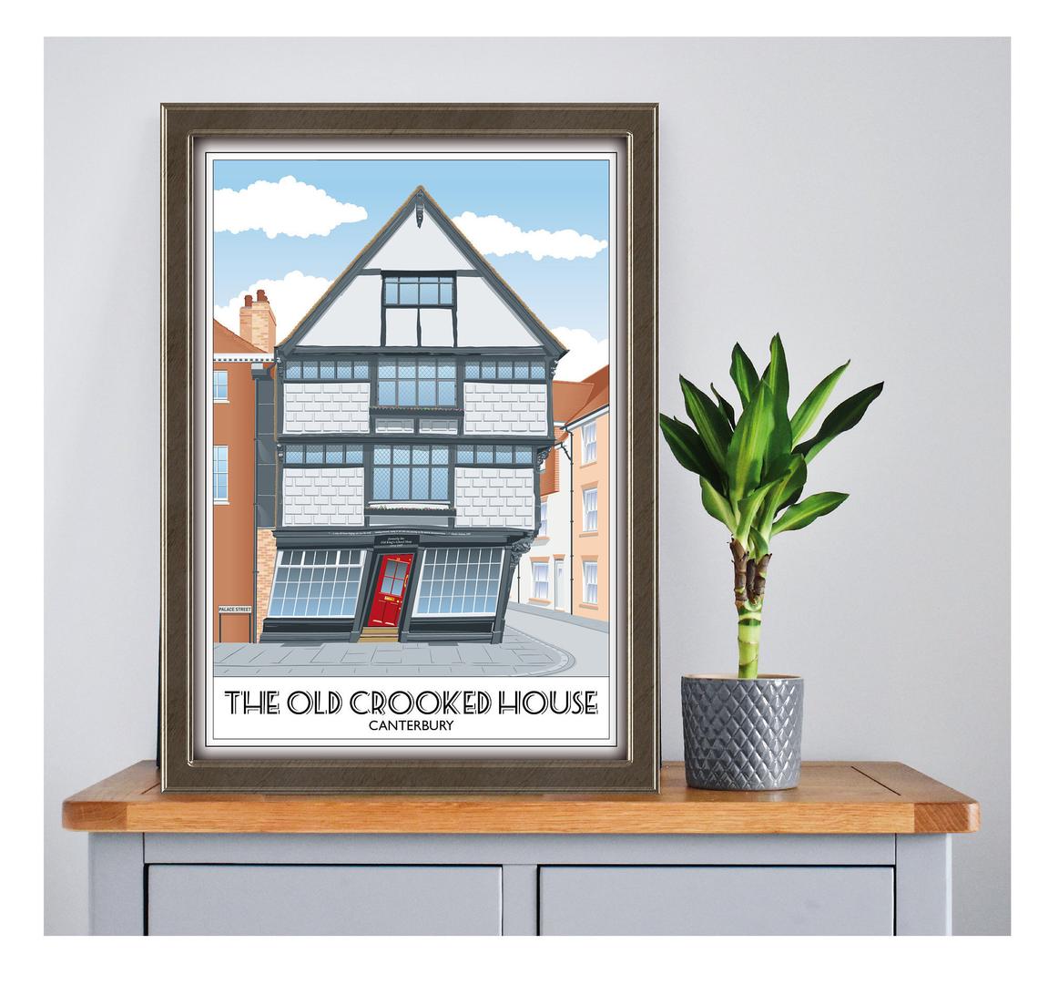 The Old Crooked House, Kings School Shop, Sir John Boys, Kent, Travel/Railway Poster, Print, Vintage, Souvenir, A4, A3, A2 in Retro style