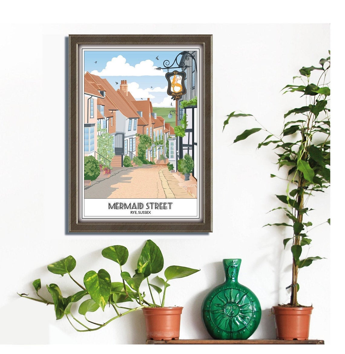 Mermaid Inn, Rye, East Sussex, Mermaid Street, Travel Railway Poster, Print, Vintage, Gift, Art Deco, A4, A3, A2 in Retro style